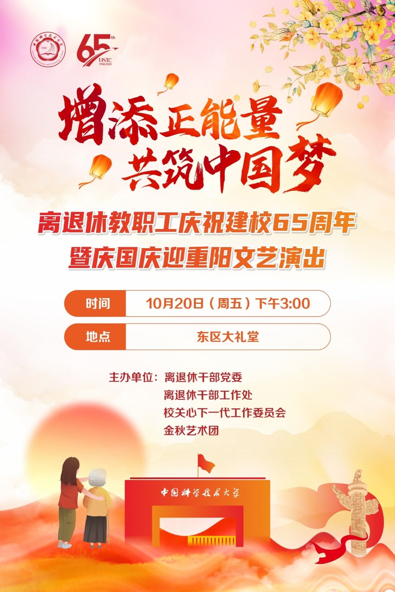 关于举办“增添正能量 共筑中国梦”离退休教职工庆祝建校65周年暨庆国庆迎重阳文艺演出的通知